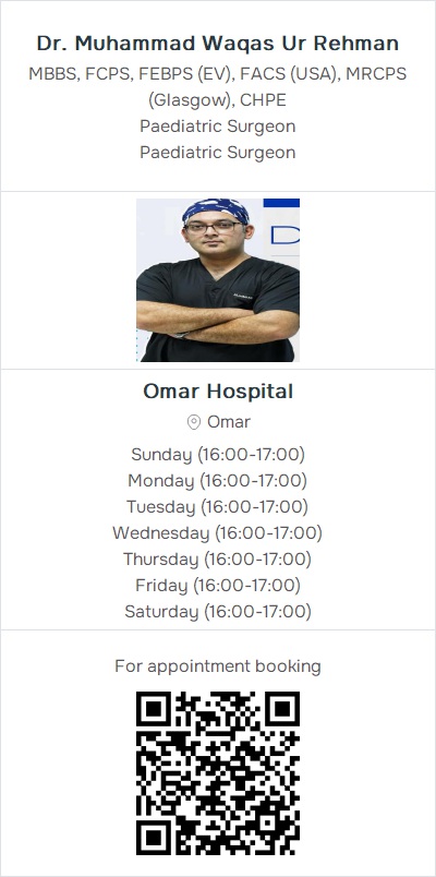 Paediatric SurgeonOmar Hospital & Cardiac Centre Johar Town, Plot # 393-396 & 423-426, Block D II Johar Town Lahore (B10) Contact: 03054998887