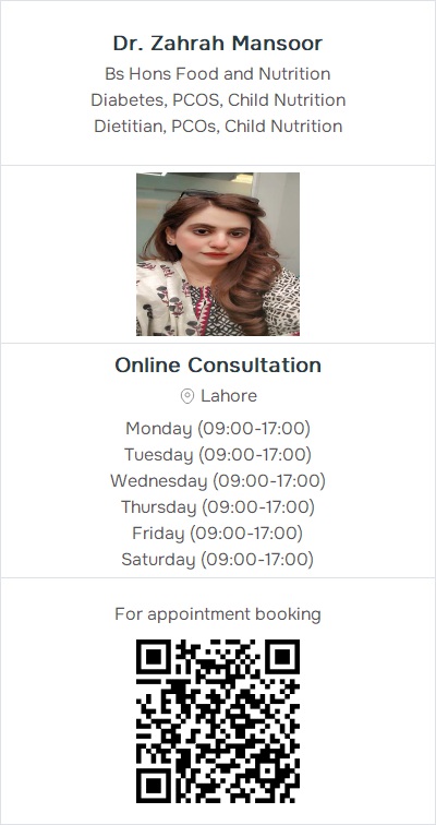 Dietitian, PCOs, Child NutritionOnline Consultation, Lahore (2) Contact: 03054998887